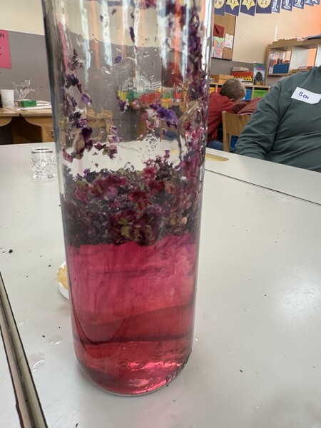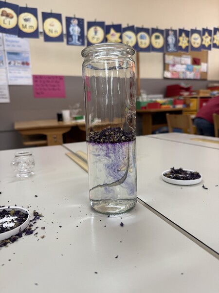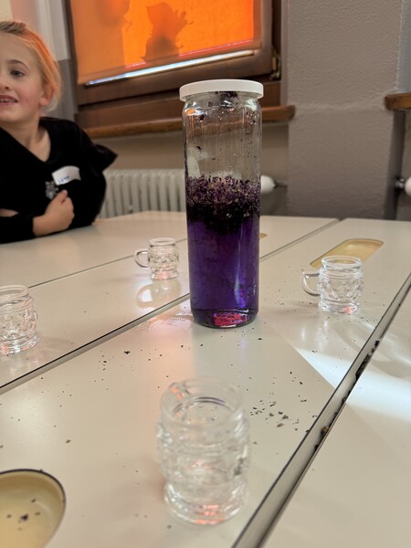 Außerdem haben wir ein tolles Salz aus Malven, Lavendel und Salz gemörsert und eine Tinte zum Malen hergestellt.