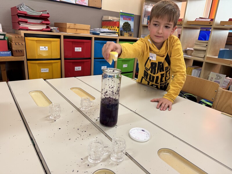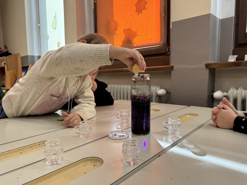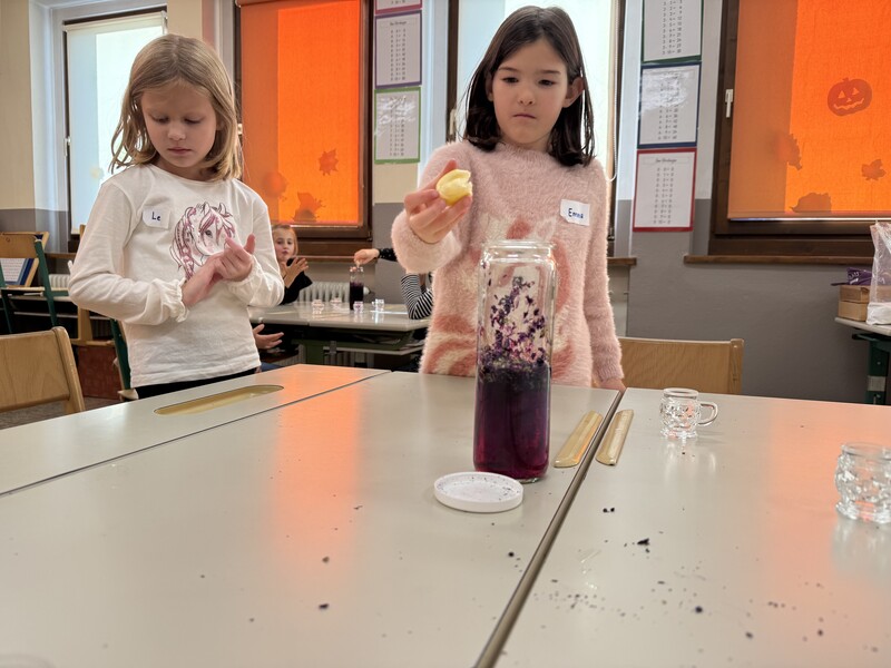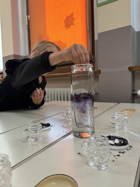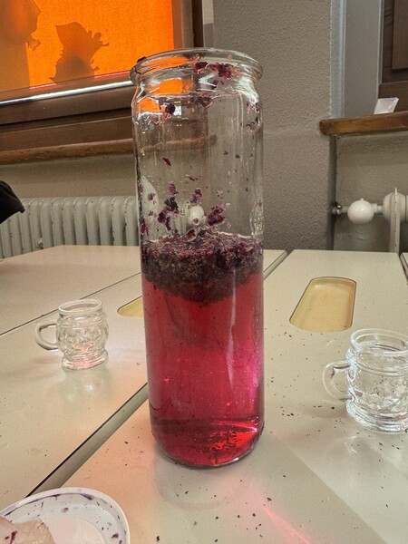 Dazu haben wir nur Wasser, getrocknete Malvenblüten und eine Zitrone gebraucht 😊 und das beste daran war, dass wir es danach trinken konnten (perfekt gegen unseren Husten).