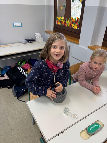 Magdalena und Margret besuchten in dieser Woche am Montag die 2b und heute die 2a. Wir haben viel über die Heilpflanze Malve erfahren.