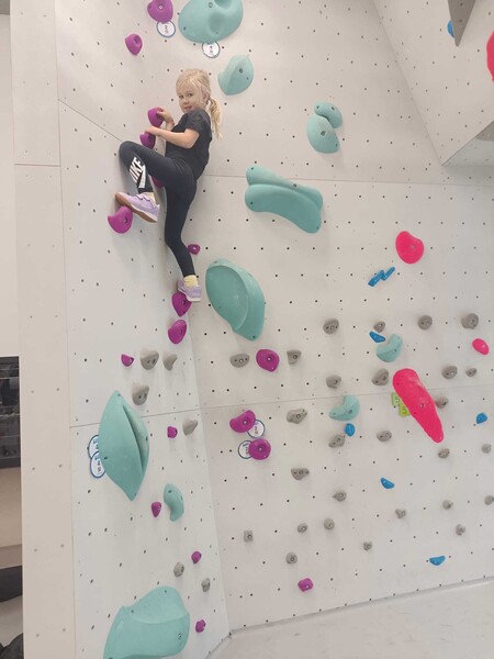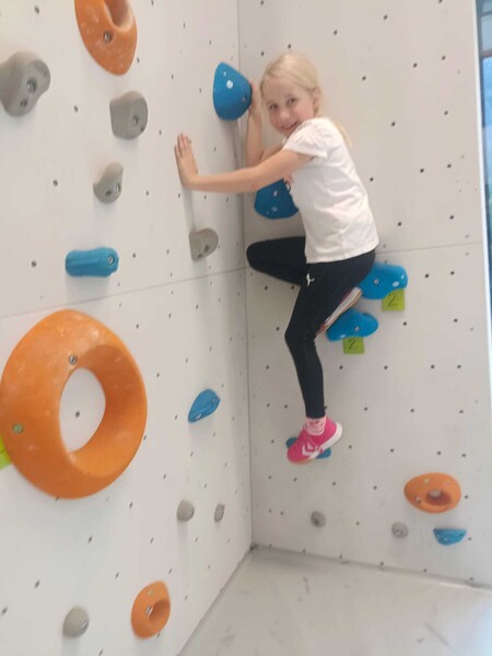 Dort hat bereits Katrin Breuer auf uns gewartet. Wir haben viel über die Boulderregeln und das richtige Bouldern gelernt und durften spielerisch unsere ersten Routen ausprobieren.